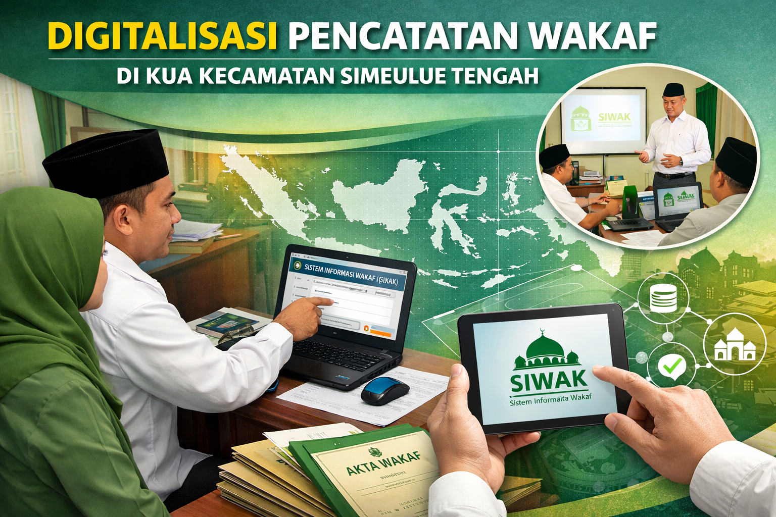 Kementerian Agama telah mengembangkan Sistem Informasi Wakaf (SIWAK) sebagai platform nasional pencatatan wakaf berbasis digital. Namun, pada tataran implementasi, tidak semua Kantor Urusan Agama (KUA) telah memanfaatkan aplikasi ini secara optimal. KUA Kecamatan Simeulue Tengah, Kabupaten Simeulue, merupakan salah satu contoh unit layanan yang sebelumnya masih mengandalkan sistem manual dalam pencatatan wakaf.